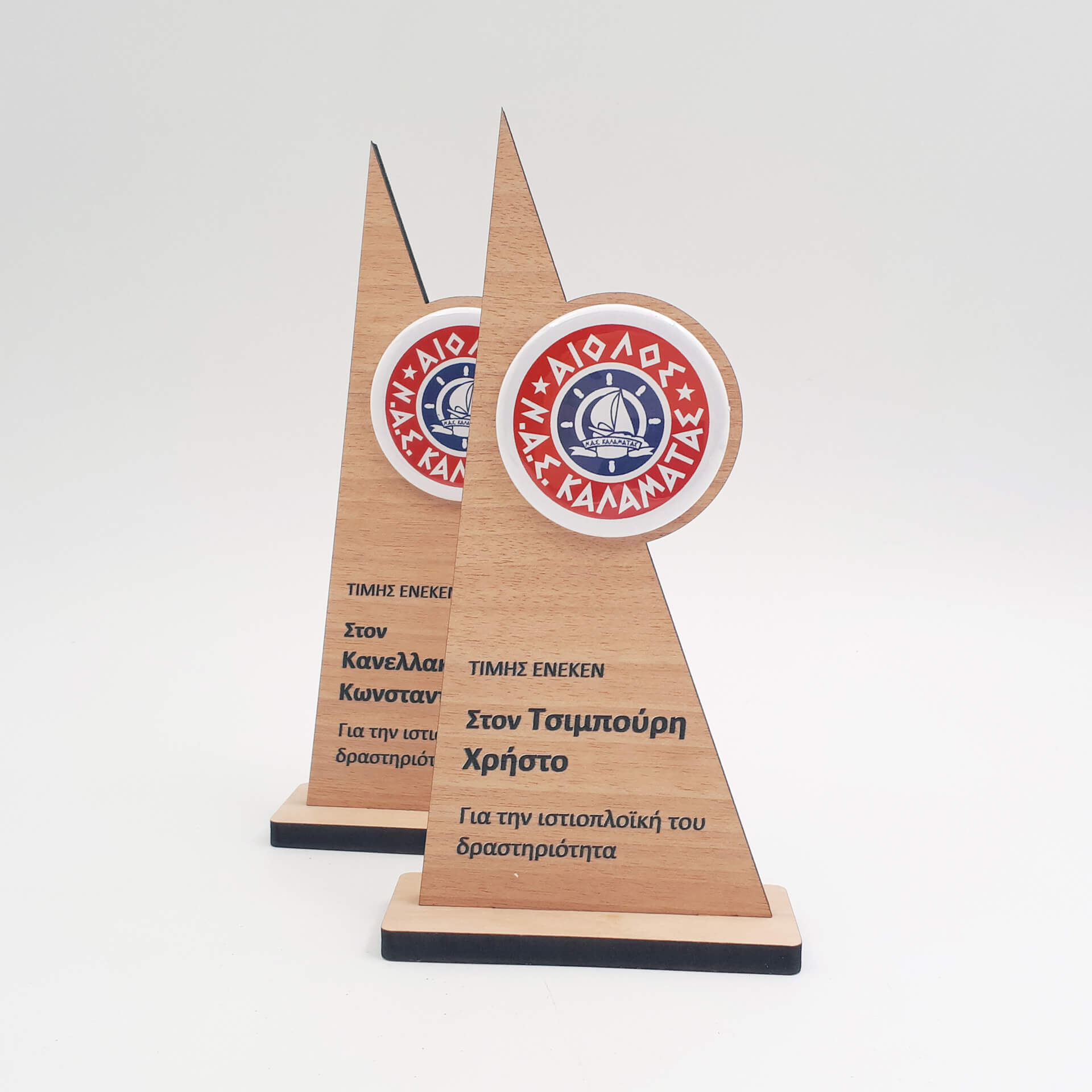 Υλικά: Ξύλο πάχους 7mm, λογότυπο σε κονκάρδα Φ5cm