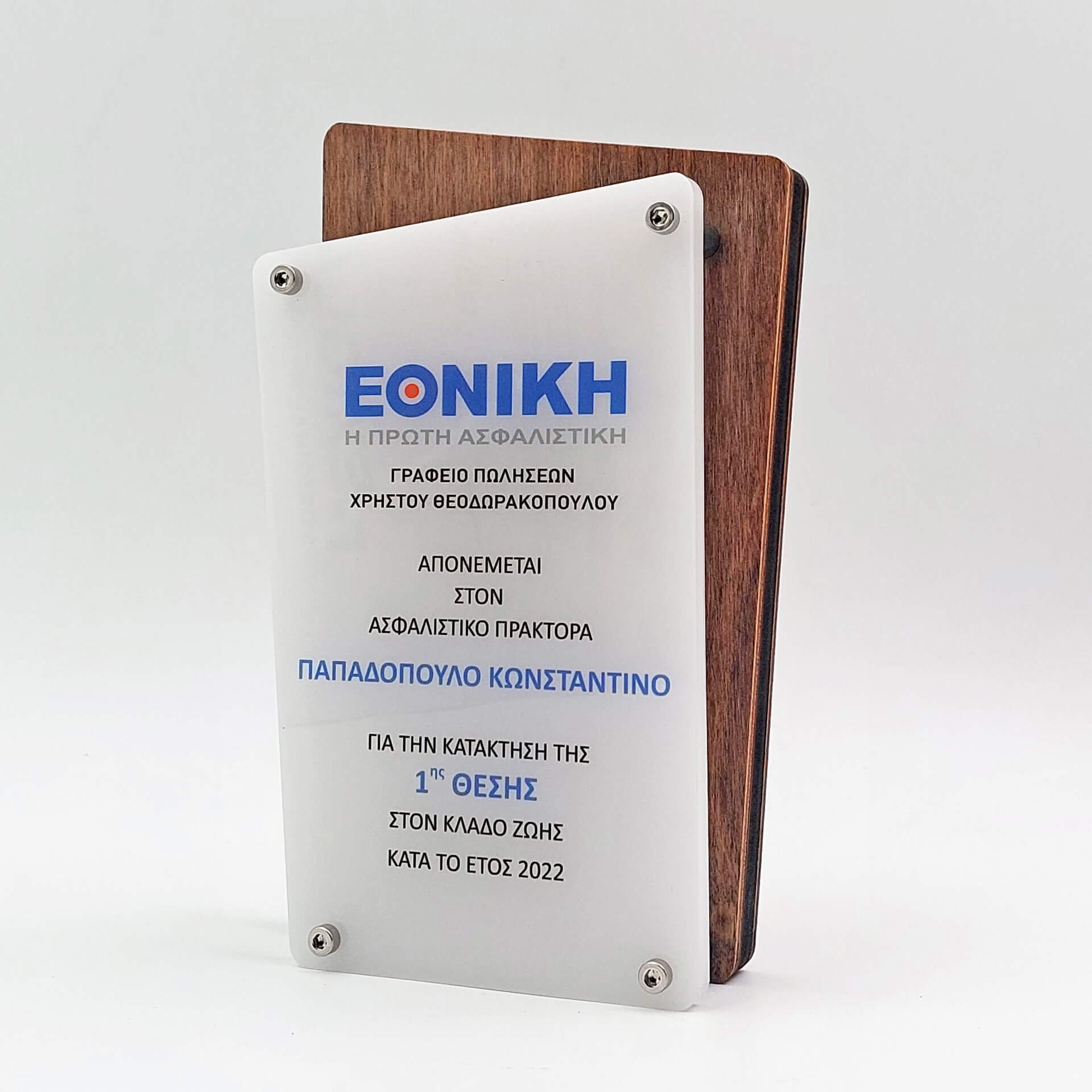 Αναμνηστική πλακέτα από ξύλο & ακρυλικό με έγχρωμη εκτύπωση επάνω στο ακρυλικό