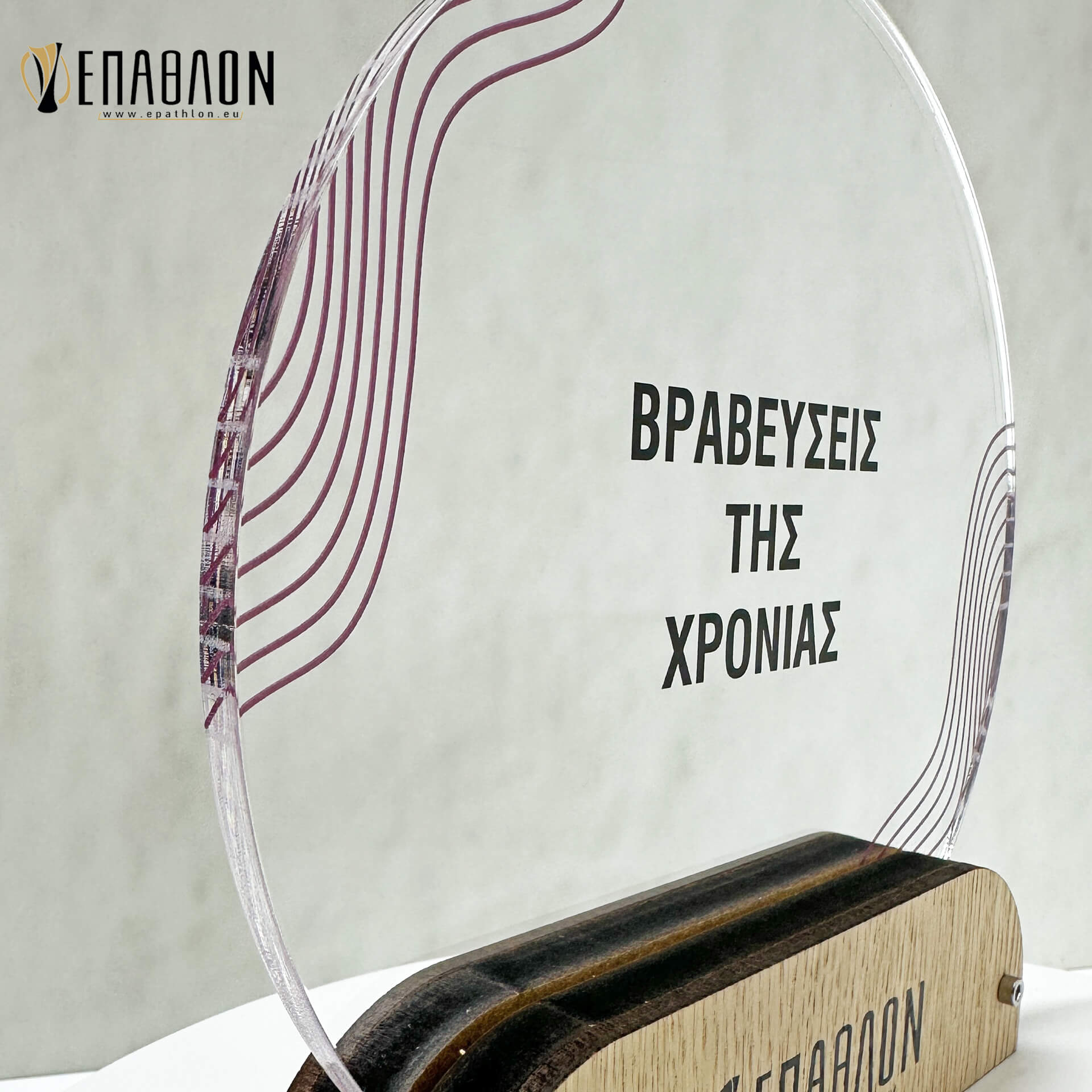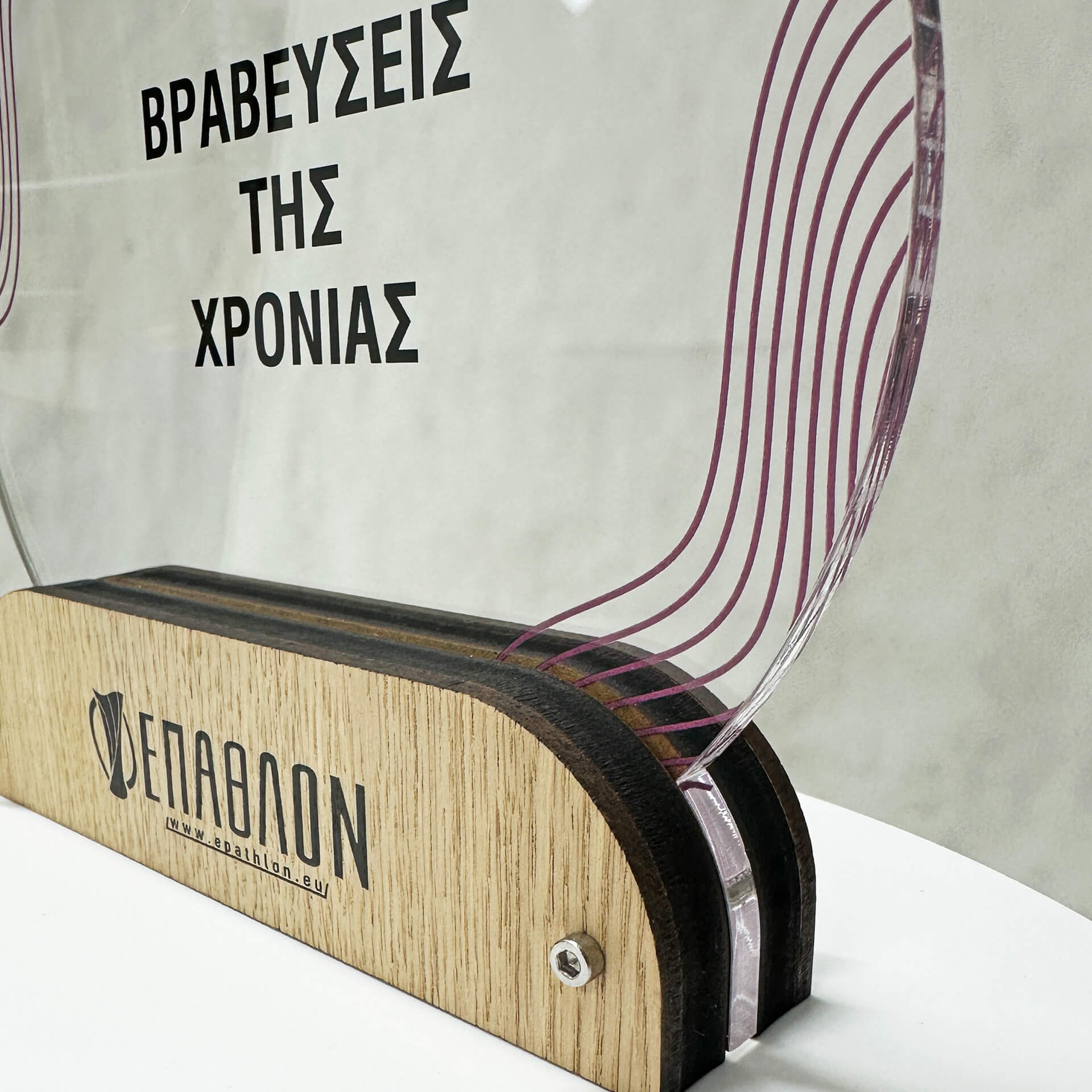 Επιχειρηματικό Βραβείο από plexiglass και ξύλο με έγχρωμη εκτύπωση επάνω στα υλικά