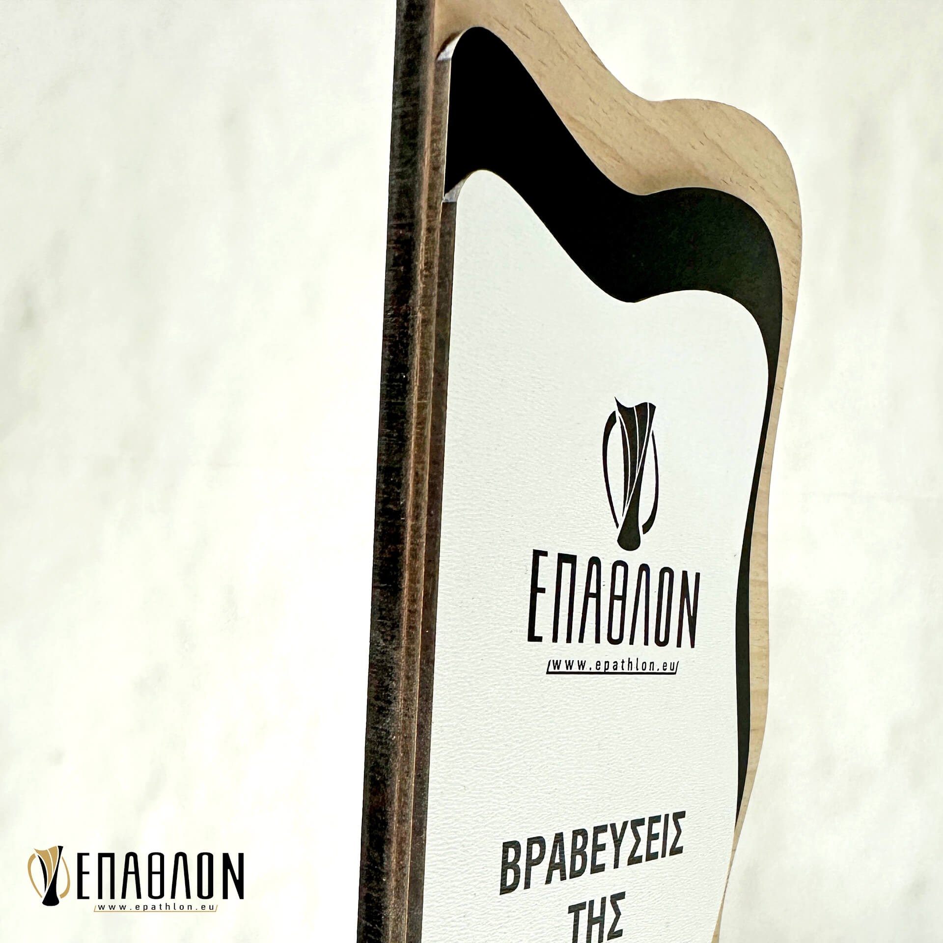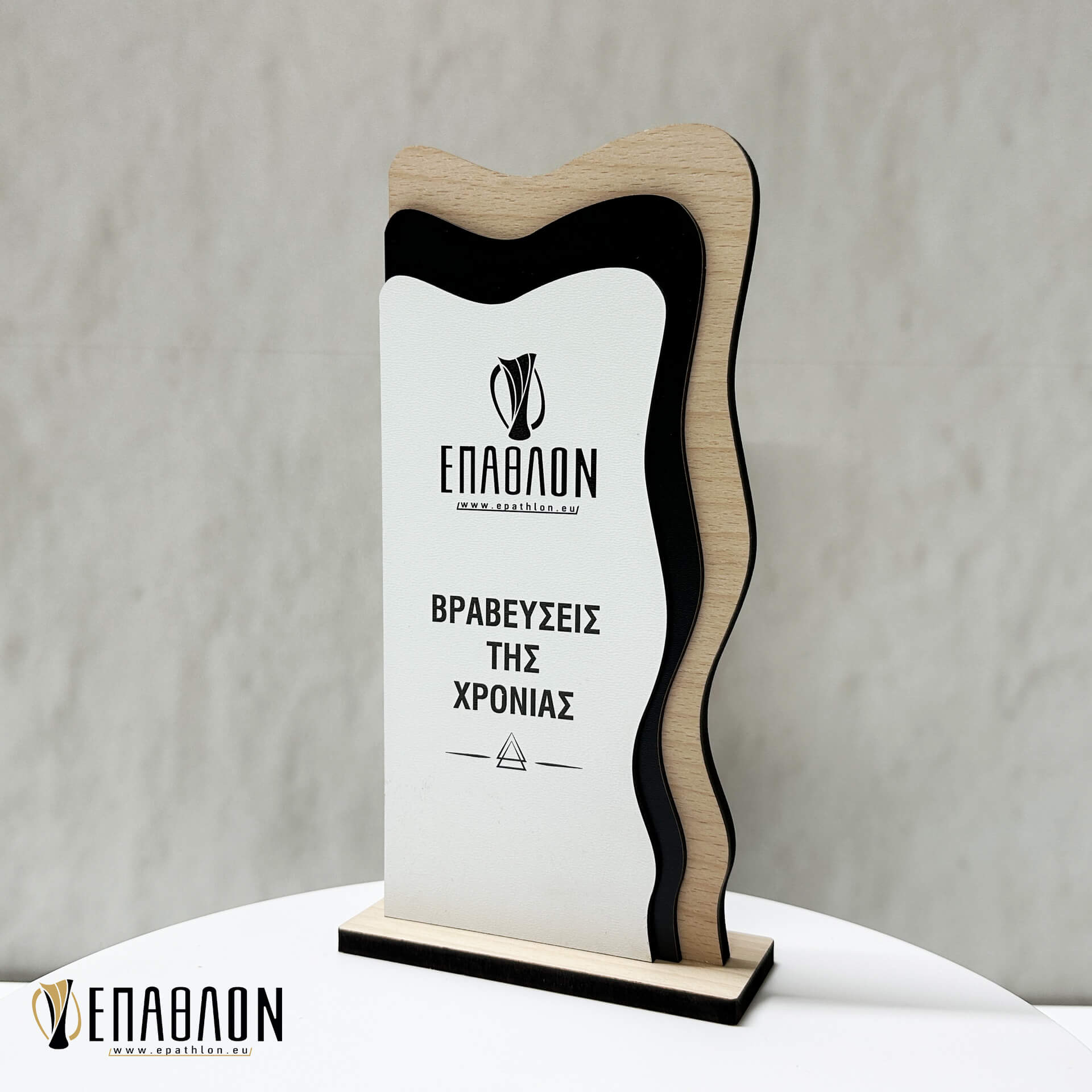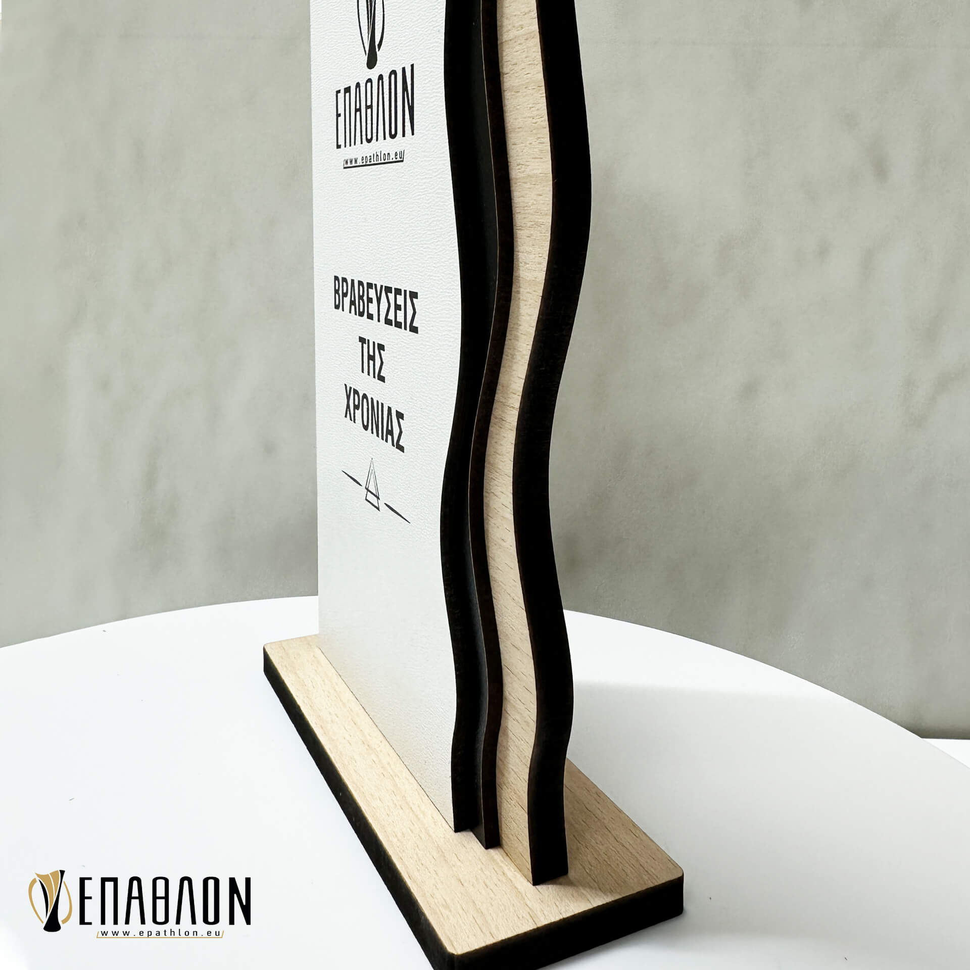 Επιχειρηματικό Βραβείο από ξύλο με έγχρωμη εκτύπωση επάνω στα υλικά