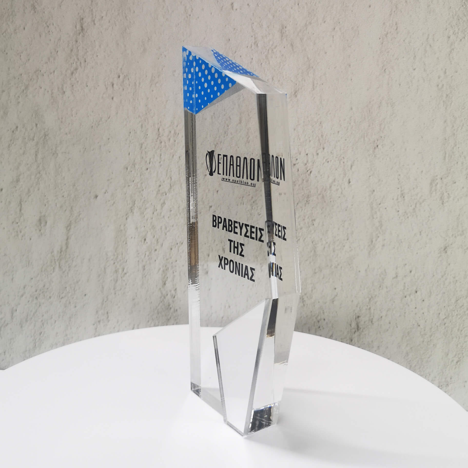 Επιχειρηματικό Βραβείο από plexiglass με έγχρωμη εκτύπωση επάνω στο υλικό