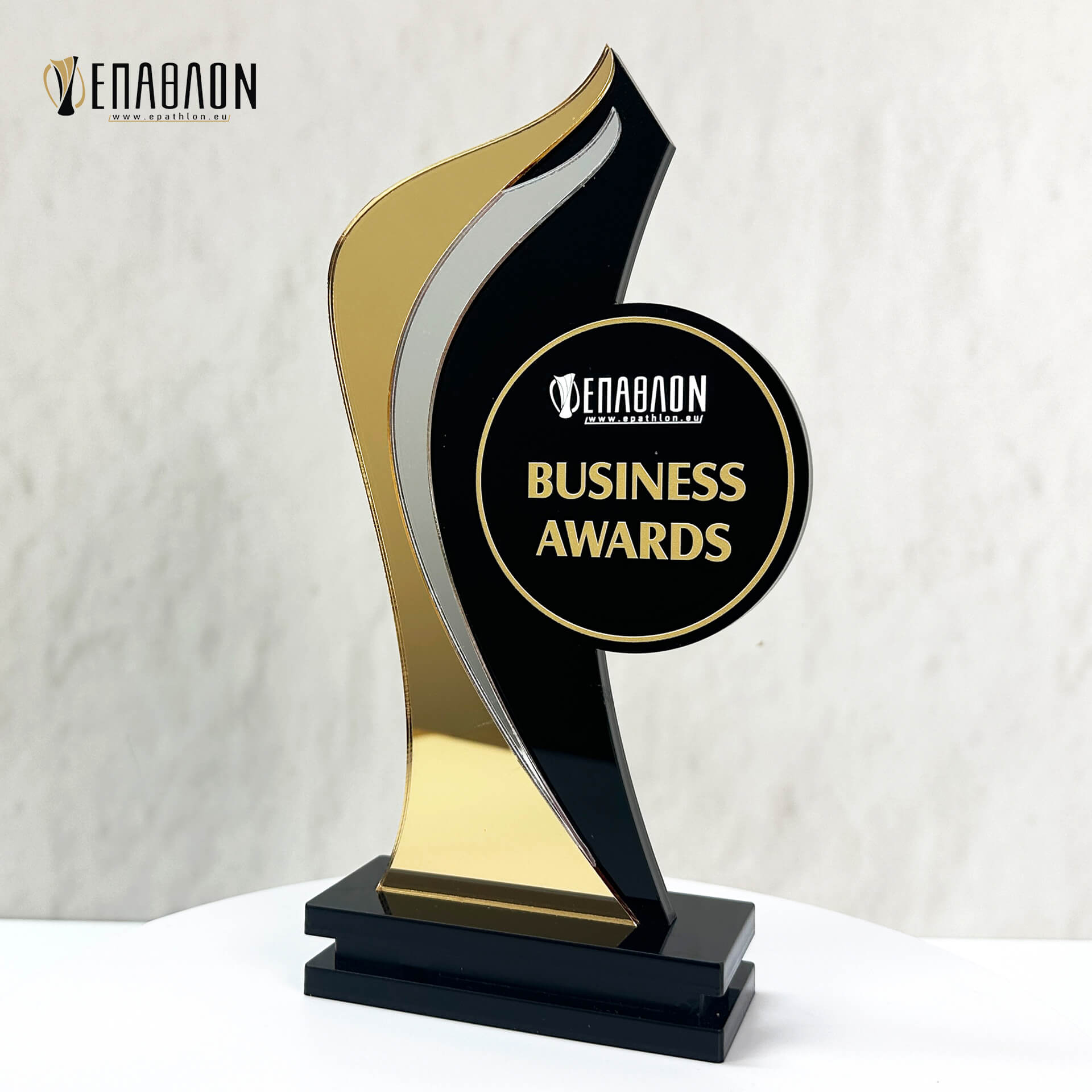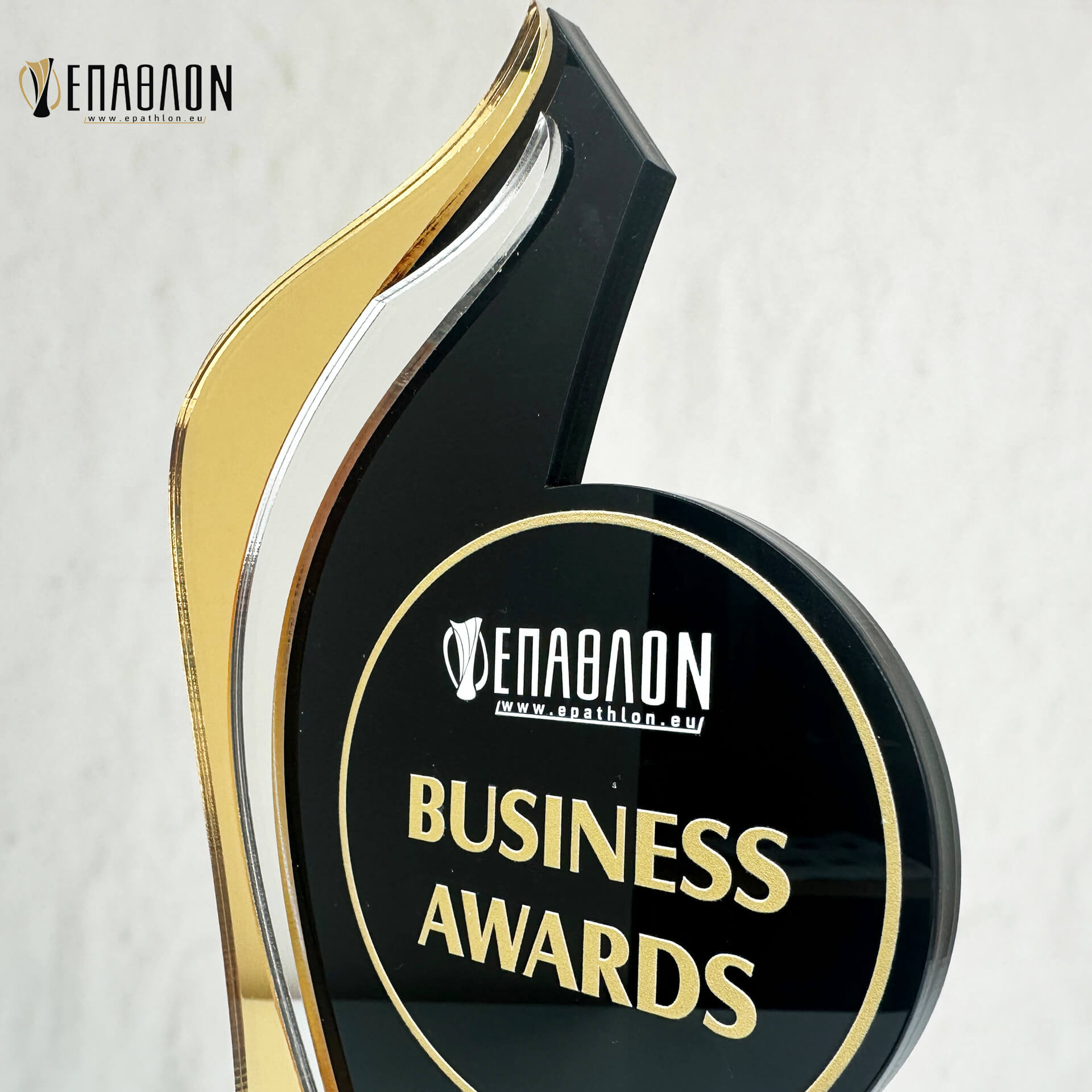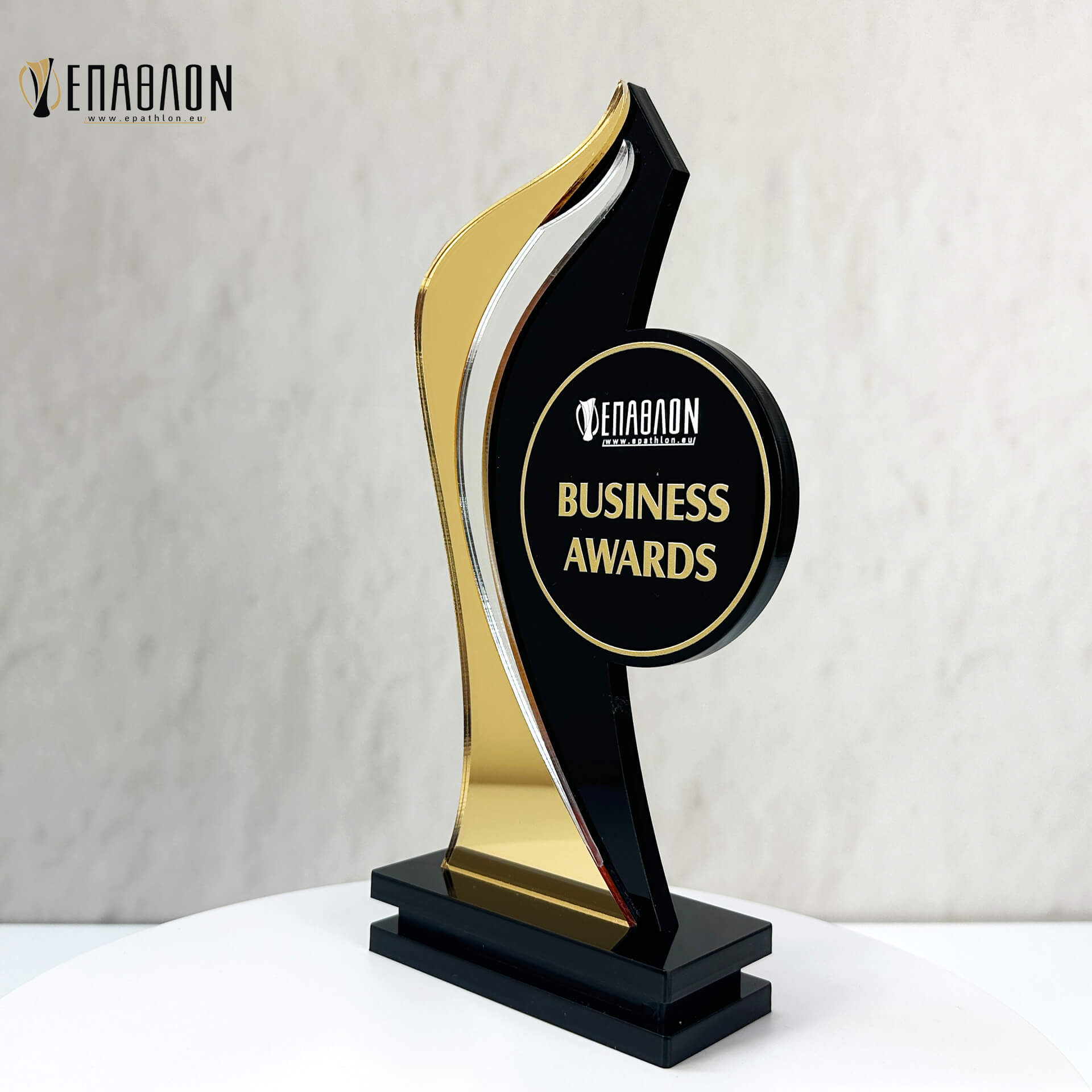 Επιχειρηματικό Βραβείο από plexiglass με έγχρωμη εκτύπωση επάνω στο υλικό