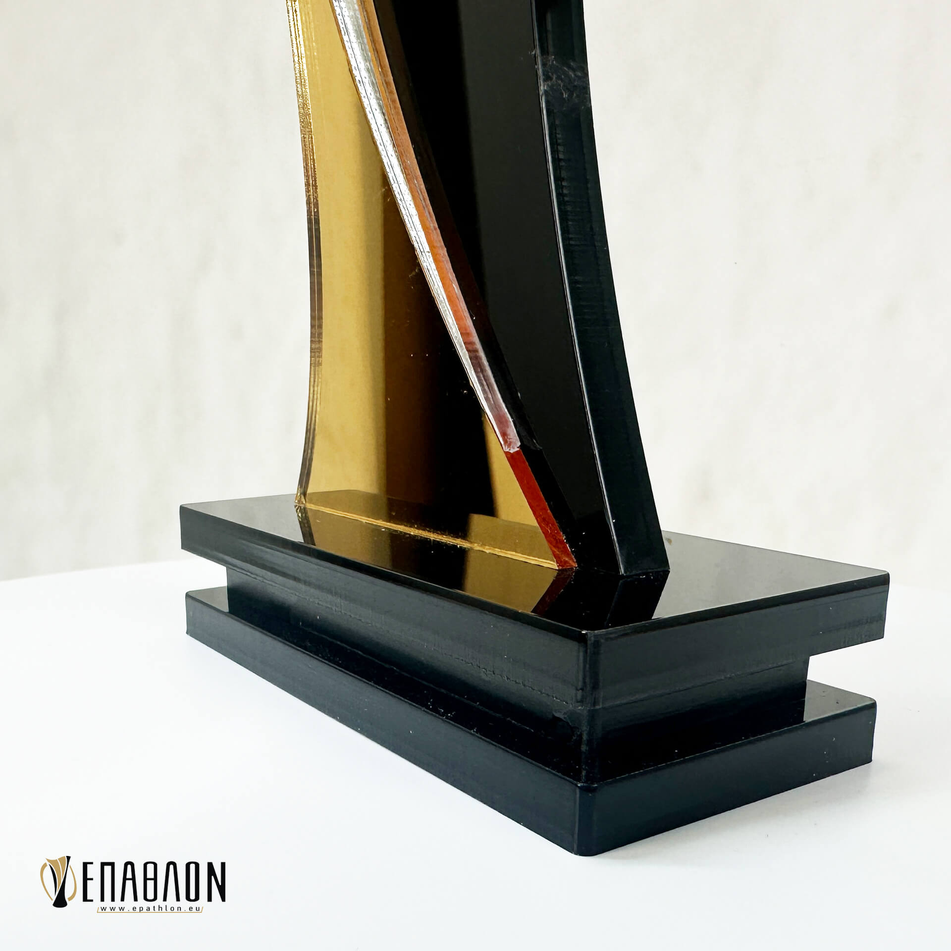 Υλικα: Plexiglass μαύρο πάχους 8mm, Plexiglass καθρέπτης χρυσο & ασημί πάχους 3mm, Βάσεις από μαύρο plexiglass πάχους 5mm