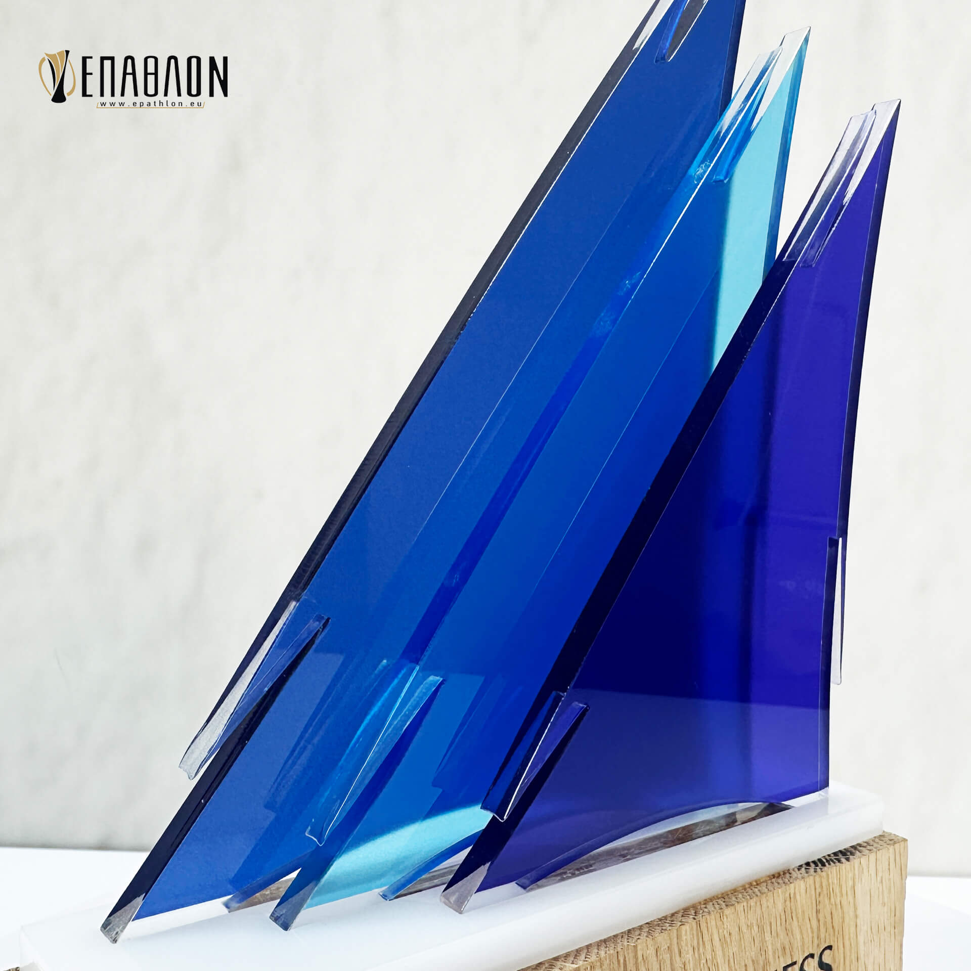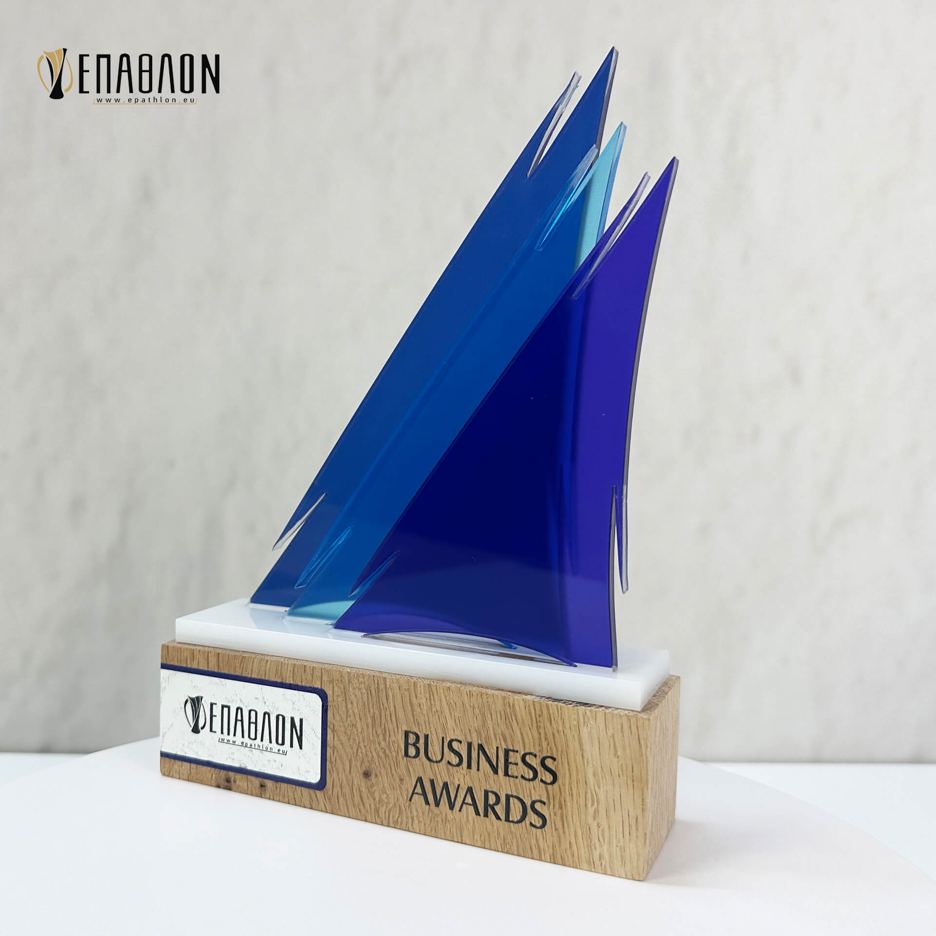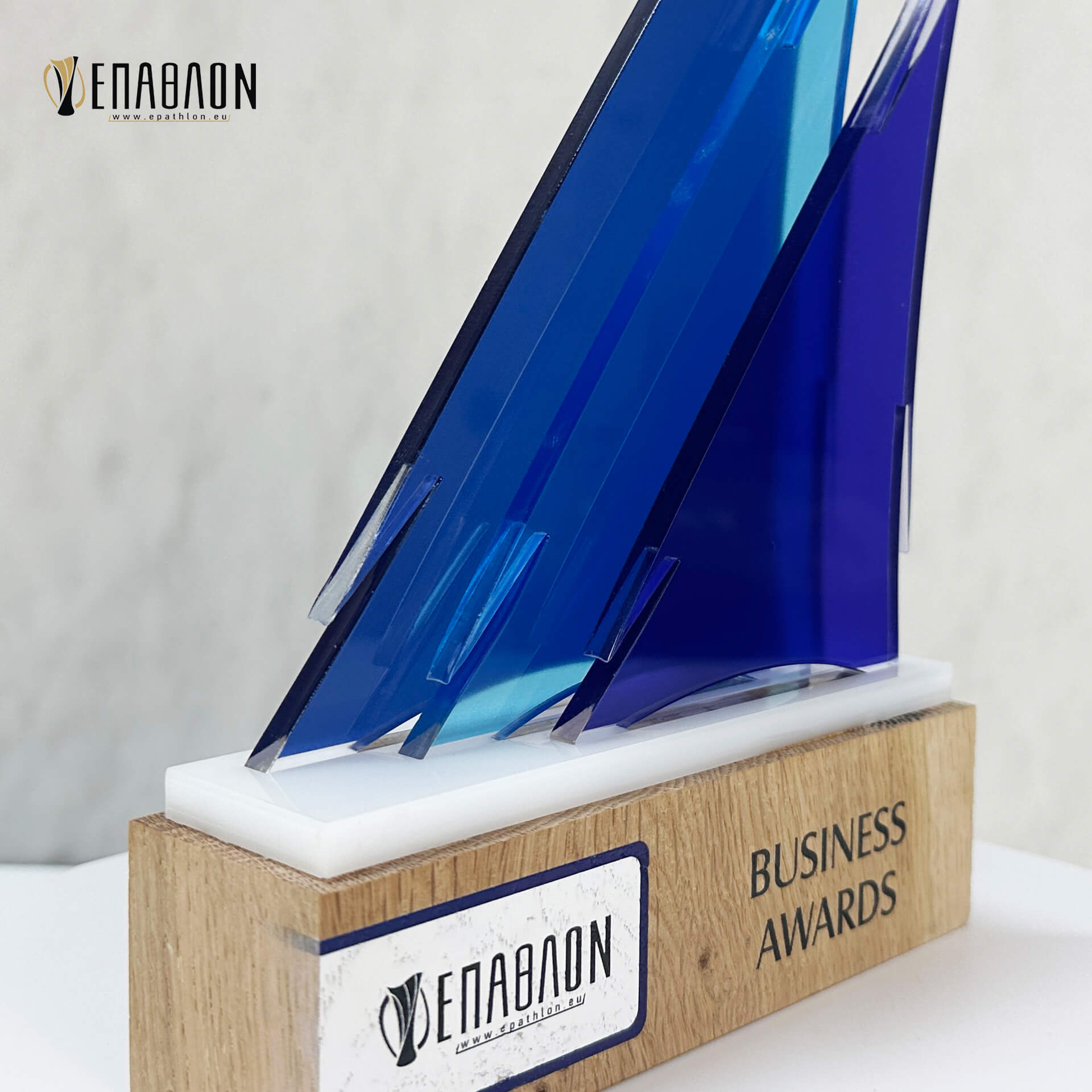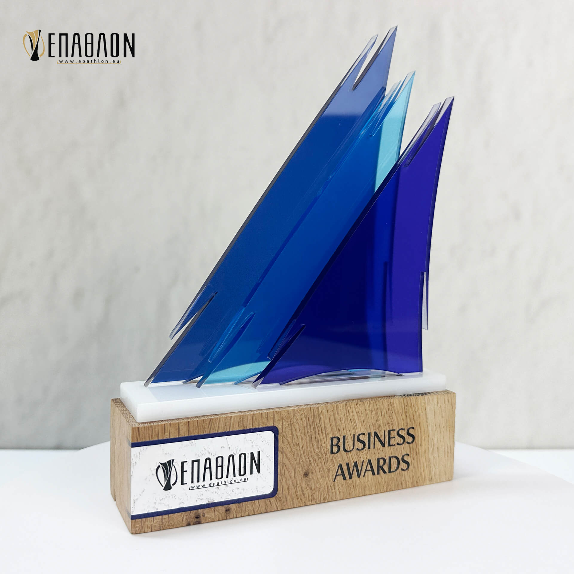 Επιχειρηματικό Βραβείο από ξύλο και plexiglass με έγχρωμη εκτύπωση επάνω στα υλικά