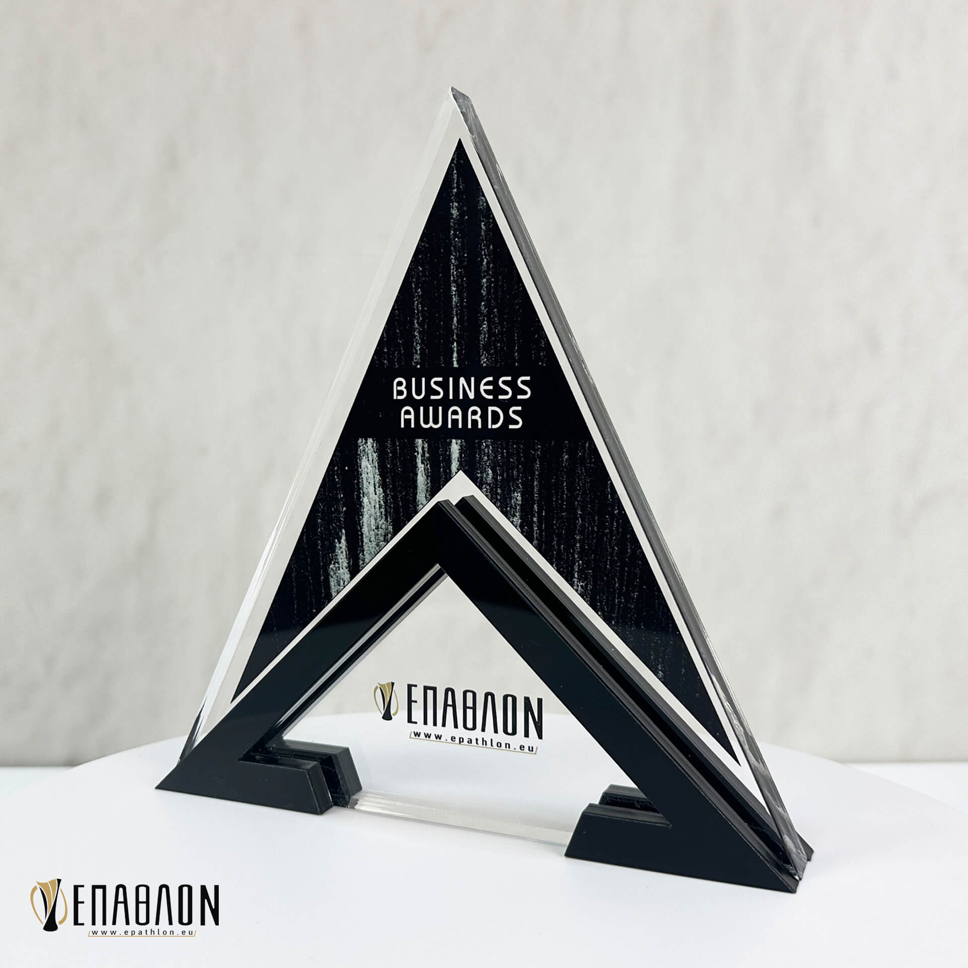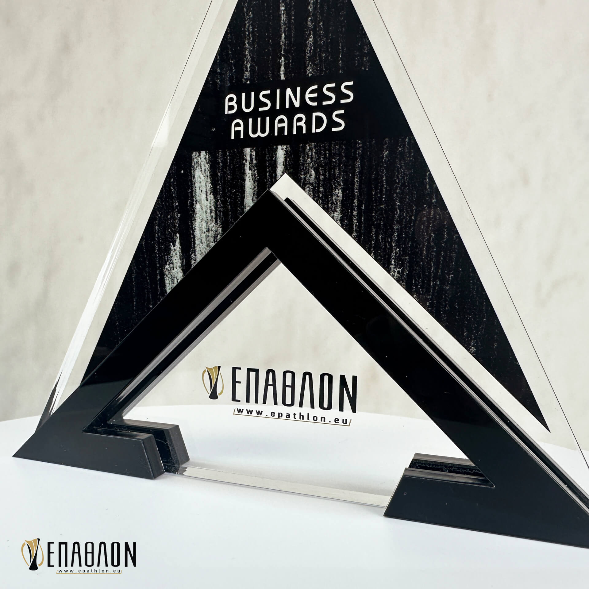 Επιχειρηματικό Βραβείο από plexiglass με έγχρωμη εκτύπωση επάνω στα υλικά