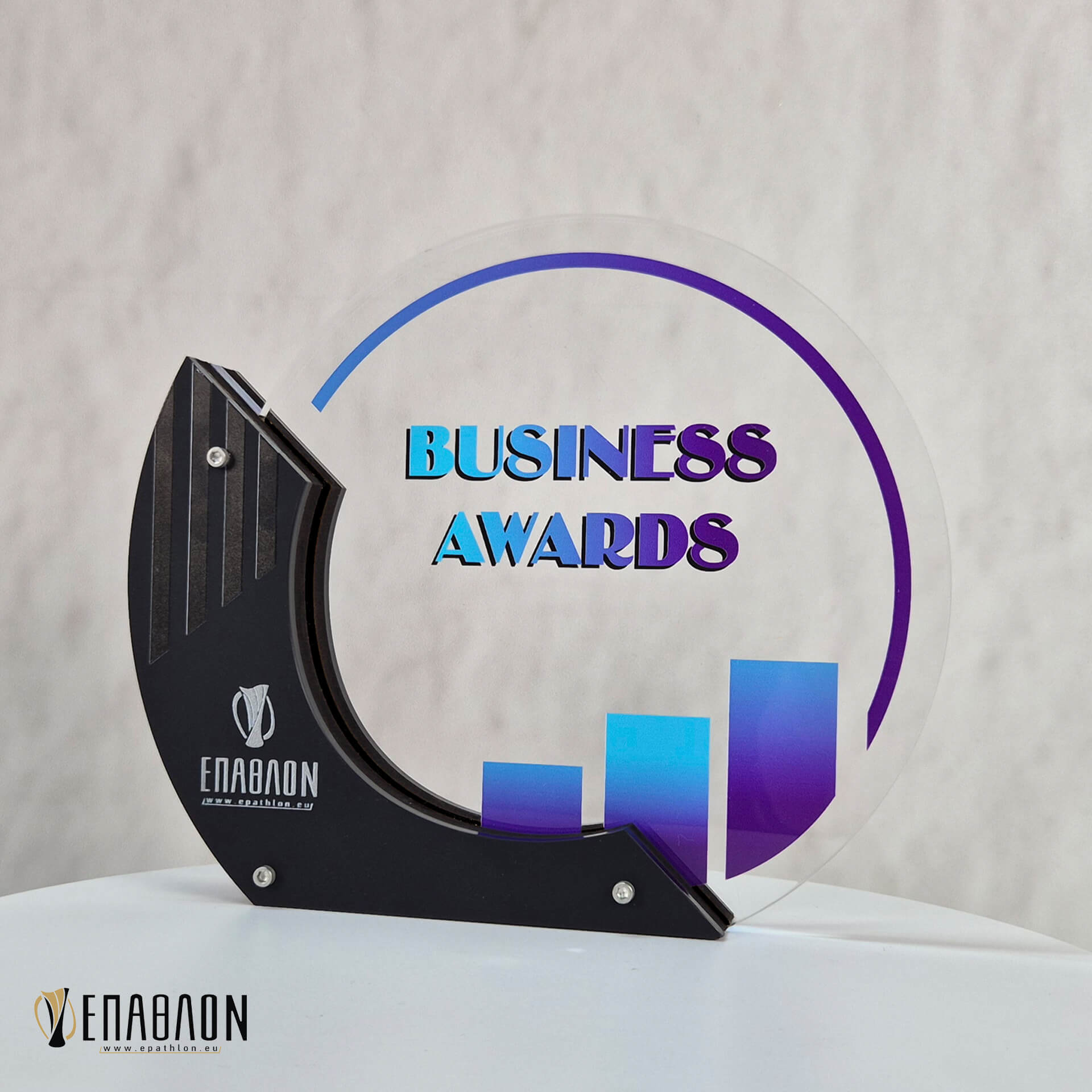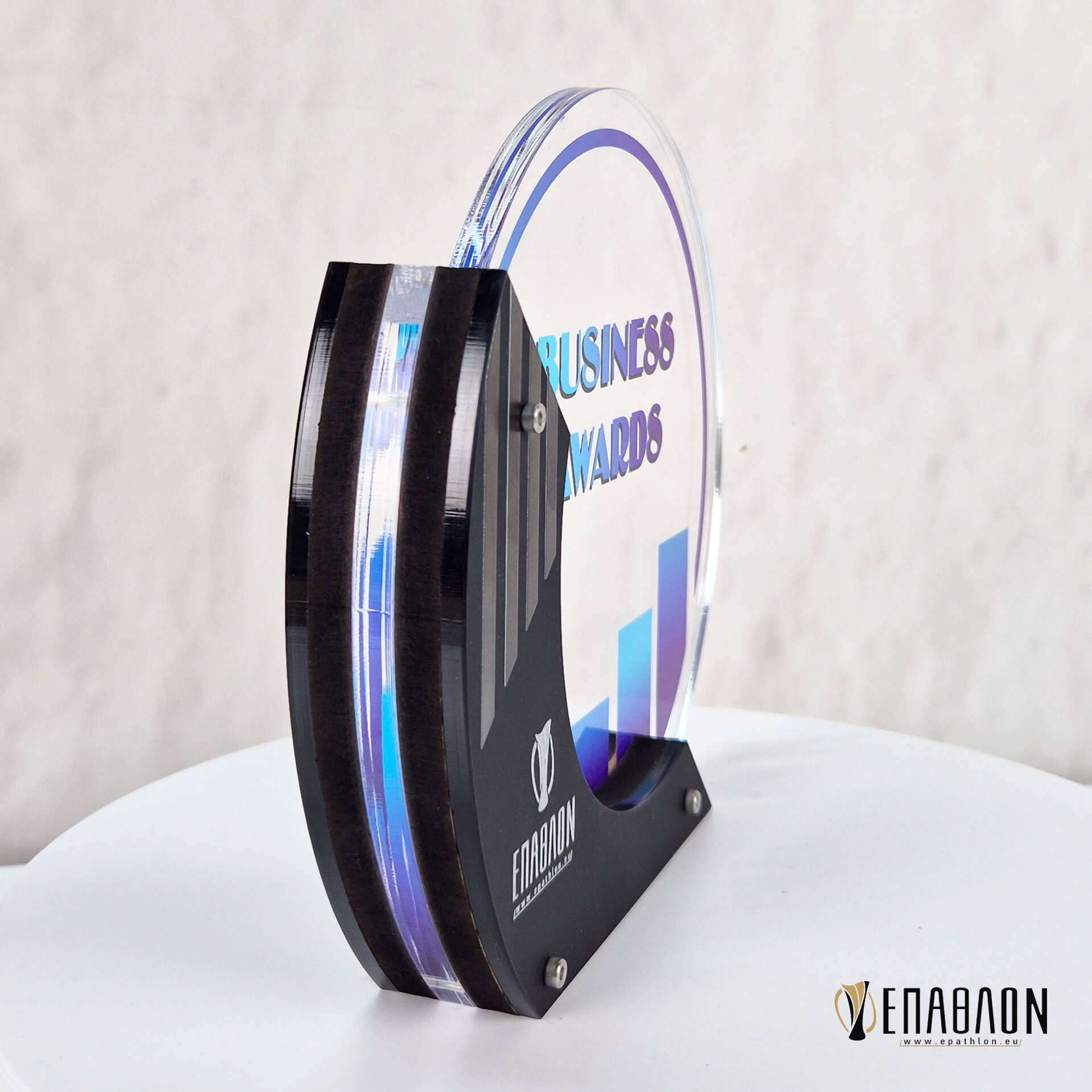 Επιχειρηματικό Βραβείο από plexiglass με έγχρωμη εκτύπωση επάνω στα υλικά