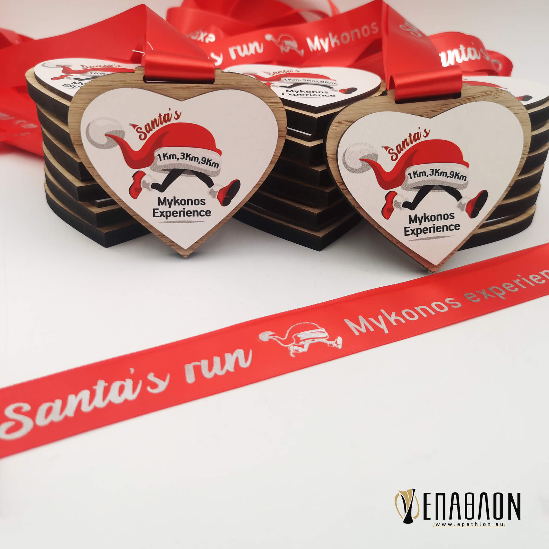 Μετάλλιο από συνδυασμό ξύλων με εκτύπωση επάνω στα ξύλο.